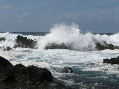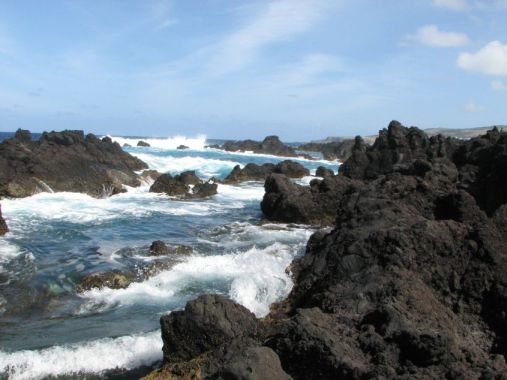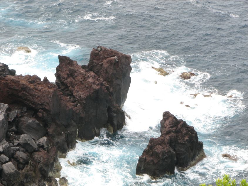 Zwei Fotos von den Azoren - hier nagt das Meer an den Lavasteinen, die ins Meer geflossen sind und schöne Badebuchten gebildet haben.